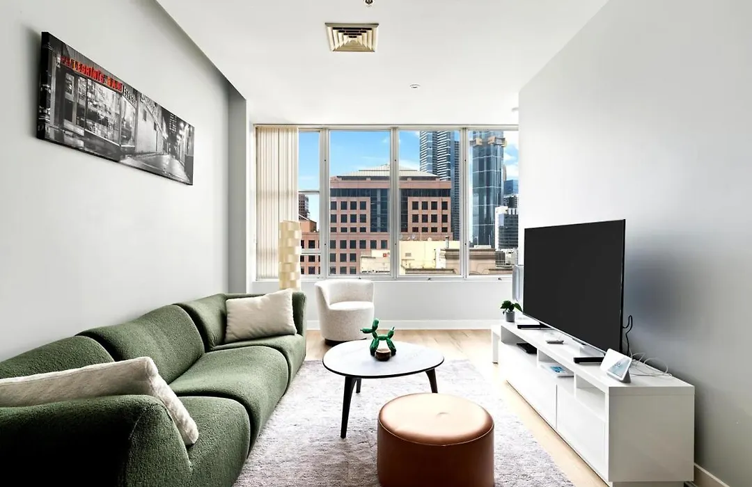 El Apartamento Premium Spot! Free Tram Zone, Flinders Stn Nearby! dispone de climatizador y lavadora, zona de estar y ofrece vistas a la ciudad. Este establecimiento cuenta con 1 dormitorio. Los huéspedes que se alojen en el apartamento disfrutarán de la comodidad de disponer de secadores de pelo en el baño. Además, hay un inodoro separado, ducha y lavadora.